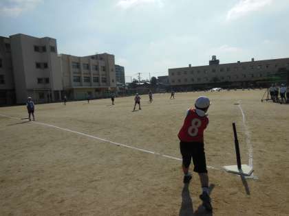 三角ベースボールの決勝戦をしました。優勝は3組の協力チームでした。負けてしまったチームも全力で応援して4年生全体で取り組みました。