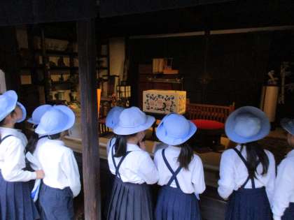 社会見学で、大阪くらしの今昔館へ行ってきました。今昔館では、体験学習に参加しました。黒電話のかけ方や、あんどんからランプ、そしてLED電球への明るさの変化など、今では当たり前になった便利なくらしが、昔の人々はどのような道具を使い、工夫して生活していたのかを教えてもらいました。体験学習後の、江戸時代の大阪の街の見学では、長屋の中や店に入り、みんな大興奮でした。また、見学後には、日本一長い天神橋筋商店街の中を、いろいろなお店を発見見つけながら歩きました。