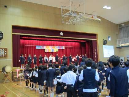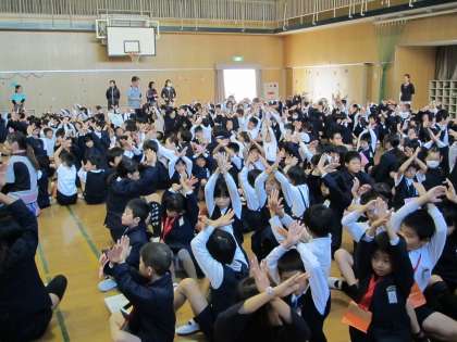120周年記念式典を明後日に控え、今日は、全校児童での「120周年児童集会 おめでとう」会です。