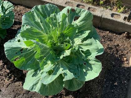 さて、学習園の3年生のはたけにりっぱなキャベツができました。そのキャベツをよく見ると・・・