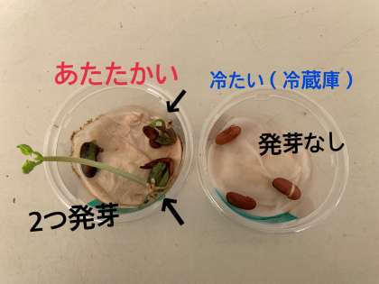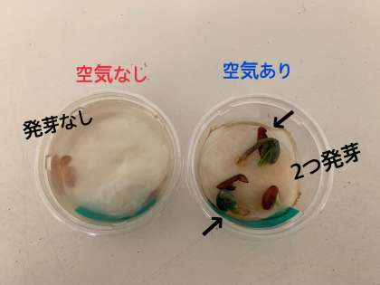 発芽の条件には、水 空気 適当な温度 が必要ということになりますね。