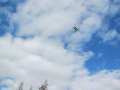 青い空、白い雲のもと、100メートルをこえてあがりました。