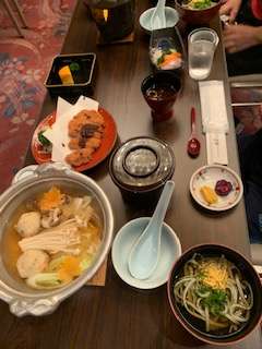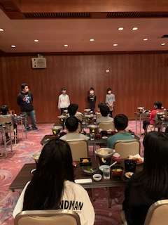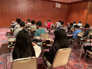 今夜の夕食は豚カツとお刺身、お鍋に茶碗蒸しなどとても豪華です。どの料理も美味しいと子どもたちも大喜びです。感染症対策も気をつけていただいています。美味しい食事を作っていただいた「千の杜」の皆さんありがとうございます。