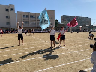 応援合戦は運動会の花です。運動会を盛り上げようと力強く応援しました。