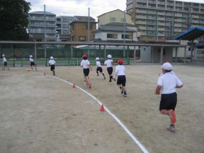 1年生がかけ足大会を行いました。運動場の200mコースを5周、計1000mを走りました。全員になると人数が多いので、学年を2つに分けて走りました。今日は風が強く、コースの目印に置いたコーンが飛ばされるほどでしたが、みんな一生懸命がんばり、走り切りました。寒さに負けず元気な1年生でした。