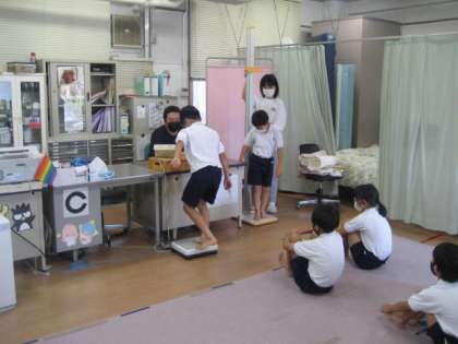 2学期が始まって毎日1学年ずつ発育測定を行っています。今日は3年生の日でした。保健室内で密にならないように入室人数を減らし、その分廊下で間隔をあけて並んで待ちました。