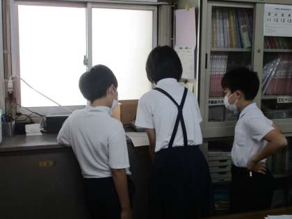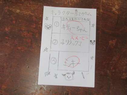 現在、感染症予防のため運動場に集まっての集会を控えています。今日は集会委員会が放送で「キャラクターあてゲーム』をしてくれました。集会委員会が出すヒントから何のキャラクターかを当てるゲームです。教室では放送を聞いて答えがわかったら配られている用紙に一人一人が答えを書いていきます。すぐわかる問題となかなか思いつかない問題もあり各教室では盛り上がっていました。こんな状況でも工夫してみんなを楽しませてくれています。