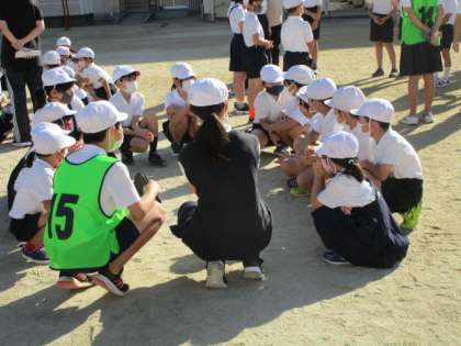 茨田南小学校では1年生から6年生までを含んだ縦割りの班を児童会で編成しています。「わくわく班」と名付けています。