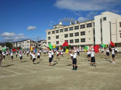今週より本格的に運動会練習が再開となりました。各学年とも9月から一度練習を始めているため、すでにかなり進んでいる学年もあります。1年生は朝ドラの曲」『なないろ』に合わせて可愛く踊っています。3年生は鬼滅の曲に合わせてカッコよく踊っています。5年生は4色のフラッグを切れよく振って踊っています。どの学年も一生懸命です。これからどんどん仕上がっていくのが楽しみです。