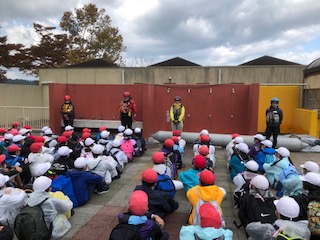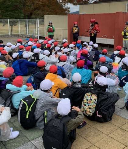昼食後、水着に着替えて濡れても大丈夫な活動着に着替えてイカダ作りの活動が始まりました。