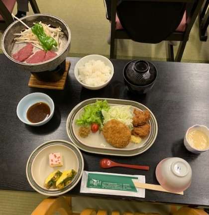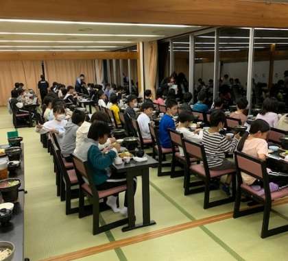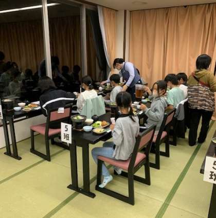 入浴が終わり、避難経路の確認が終わって夕食タイムです。