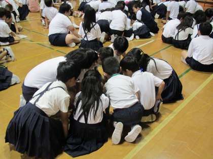 縦割り班での活動を通してそれぞれに思いやる心が育つことでしょう。