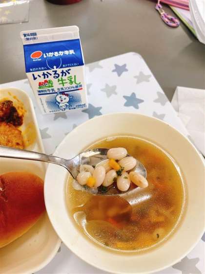 給食に「豆」が出ると知ったときに、豆が苦手な子が「豆やーー!!いややーー!!」「なんで豆でるん?」と言っている横で「豆おいしいのになんで嫌いなん?」と言っている子がおり、反応がいろいろあり、楽しい時間でした。