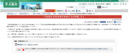 「現在、平成28年度から大阪市内の中学校で使用する教科書を決定する(採択)ための作業が大阪市教育委員会で進められています。採択にあたっては、保護者や学校協議会委員、市民の方々のご意見をアンケートにより集約し、皆さまのご意見も参考に決定されます。つきましては、区役所や地域図書館など市内32か所の教科書センターで教科書を展示し、アンケートを受け付けておりますので、是非ともご協力いただきますようお願いします。」