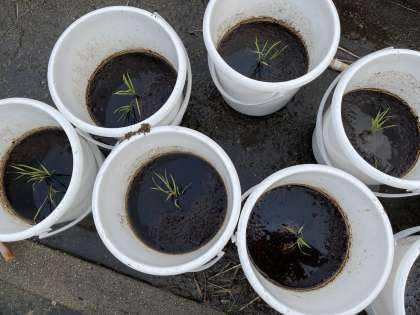 先日、塩水で仕分けた種もみが芽を出しました。白い芽をにょきにょきと伸ばした様子に子どもたちも大喜びしていました。