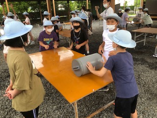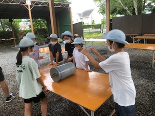 そして氷と塩をが入ったアイス製造機?にその容器を入れ20分転がします。楽しんで転がしていました。