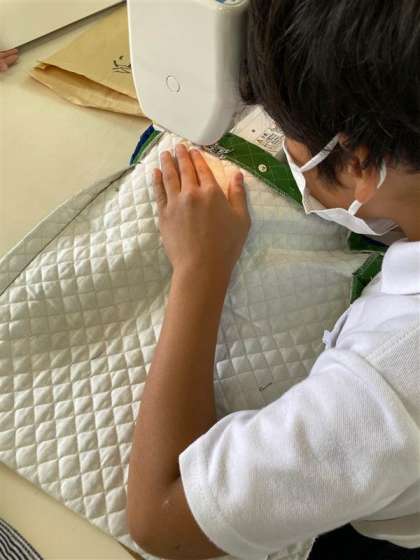 家庭科で「ナップザック」を作っています。今週は難しいところを縫いました。失敗してしまい、やり直しの子もいましたが、なんとかほとんどの子どもたちが時間内に縫うことが出来ました(^^)