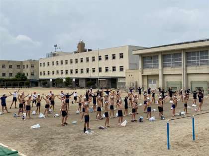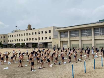 写真は、準備体操をしているところです。泳いでいるところは撮れませんでした…