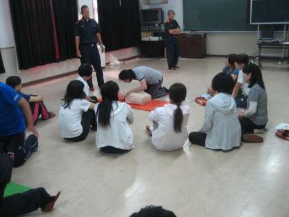 鶴見消防署の方たちにきていただきました。