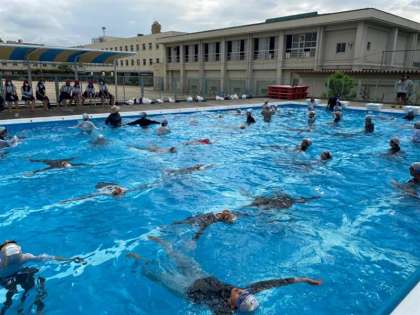 次は、浮く練習をしました。服を着て浮くことはとても難しく、足が沈んでいる児童が多く、体勢を整えようと頑張ると体全体が沈んでいまし、苦戦してる様子が見られました。何回か繰り返してくうちに上手く浮けるようになった児童もいました。
