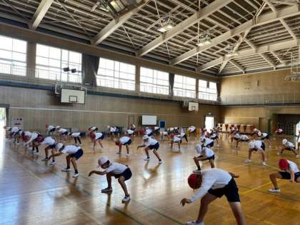 まだ、腰が高く、背中が丸まりうまく姿勢がとれない児童もしましたが、みんな意欲的に取り組んでいました!!