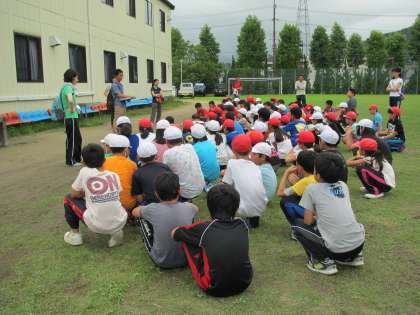 避難訓練 天然芝グラウンドです。