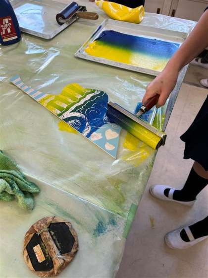 板が彫り終わり、今日は「刷る」作業に入りました。