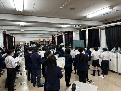 まずは、6年間歌い続けてきた「校歌」で声出しを…。