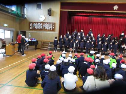 今日は6年生ありがとう会がありました。この1年茨田南小学校を支えてきてくれた6年生に感謝の気持ちを伝える児童会の行事です。在校生からは6年生一人一人に感謝のメッセージカードを贈りました。6年生からは各学年に手作りの雑巾のプレゼントと合唱、合奏が披露されました。児童会からジェスチャーゲームも用意され、わくわく班の中で答えを話し合って決めました。全学年にとって楽しい思い出に残る会となりました。