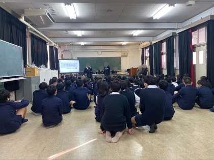 茨田中学校の生徒会のみなさんと先生が来校され、中学校の行事や部活動について面白く教えてくださいました。