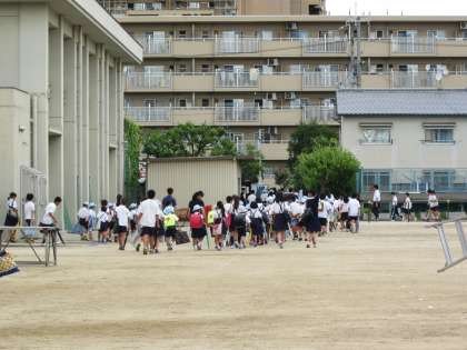 おりしも台風が接近している中、台風を想定した避難訓練を実施しました。
