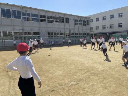 5時間目は、5年生が6年生に挑戦状を送り、茨田南恒例の「ドッジボール大会」をしました。