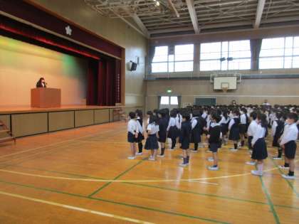令和4年度が今日で終わりとなり、修了式を行いました。今年度はコロナ感染の広がりはあったものの多くの行事を実施することができました。今日、子どもたちは通知票と共に修了証を受け取り、一年間頑張った証となりました。いよいよ4月、新学年となります。この春休みしっかり準備をして新学期を迎えてほしいです。保護者の皆様、一年間ご協力いただき、本当にありがとうございました。