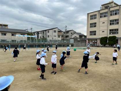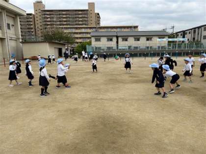 今日は2時間目に1年生みんなで運動場に出て体を動かしました!