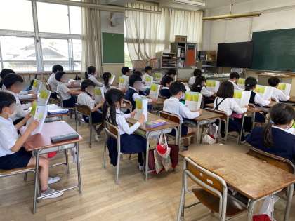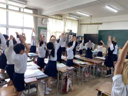 しっかりと姿勢を正して音読をした後、たけのこに変身☆