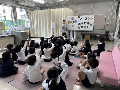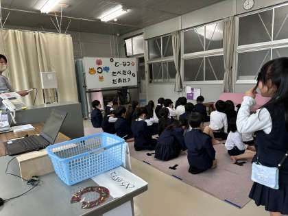 検査の前には、「ドーナツたべたのだあれ?」というクイズであいている部分がどこかみんなで確認しました。