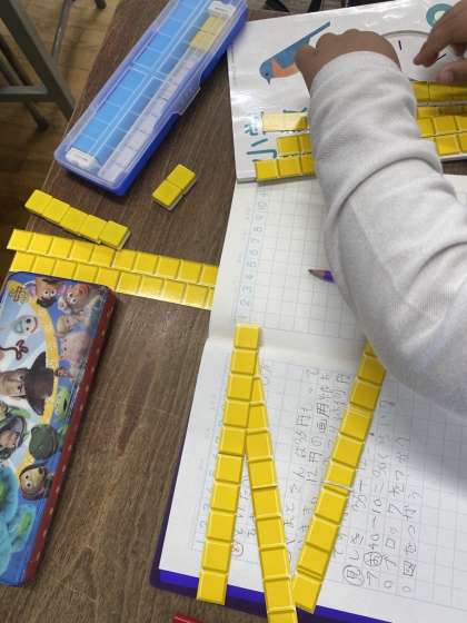 「ブロックを使って考えたり図を使って考えたりする!」と