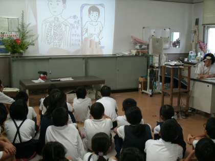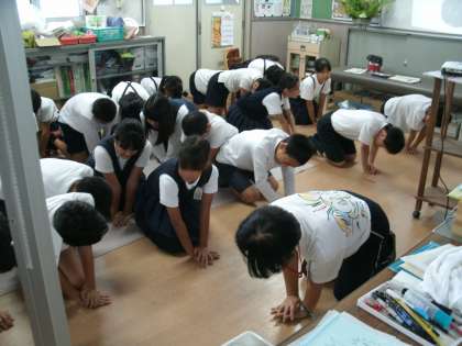 さらに、万が一心臓が止まったときの「心臓あっぱく」の姿勢について学習しました。