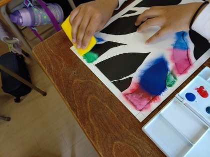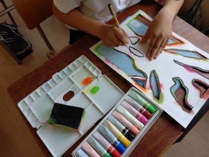 前回に引き続き、スポンジをポンポン、ポンポンしていき…、ついに完成!それぞれが想い想いの『夢色の木』を芽生えさせています。掲示してたくさんの木が並んだ様子を見るのが楽しみです。