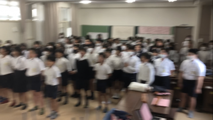 学年の3クラスが集まり、大きな声で『翼をください』を合唱!大きな声を出せない時期が長かったですが、また子どもたちの元気な歌声が戻ってきました。それだけでも嬉しいですね!