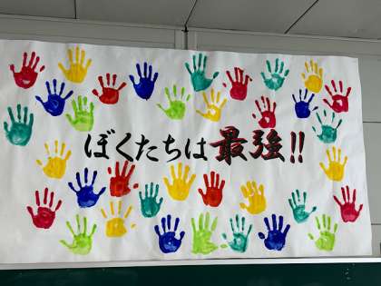 教室に掲示する「学級目標」を作りました!1組は手形、2組は足形です。みんなでわいわい楽しく作ることができました。1年間、この学級目標に向かってがんばります!