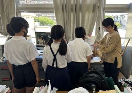 図書委員会の5年生が、全校児童に朝読書についてお知らせをしています。5年生にとって、委員会活動は初めてのことだらけです。先生や6年生にいろいろと教えてもらいながら、活動しています。