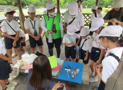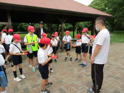 開会式を終えてウオークラリーに出発。たてわり班でチェックポイントを回っていきます。それぞれのポイントでは班で協力してゲームやクイズに挑戦。力を合わせたり、記憶力や知識、運?で獲得できる得点が違います。どの班も1〜6年生みんなが力を出し合いました。特に高学年は班長を中心に低学年の子たちに声掛けしながらコースを回っていました。