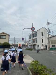 道路の標識や点字ブロックなどにも注意しながら、町にはどんな工夫があるか見ながら歩きました!
