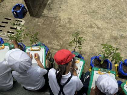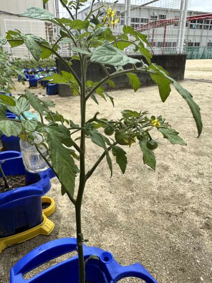 子どもたちは、「緑色のトマトができている!」「8個実ができている!」と、とても嬉しそうに観察をしていました(*^▽^*)
