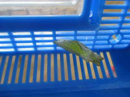 理科の学習で育てているモンシロチョウやアゲハチョウの幼虫がサナギになっています!