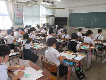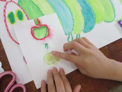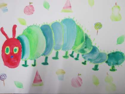 図工の学習では、理科の学習「チョウの育ち」に並行して、はらぺこあおむしを描きました。