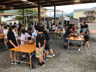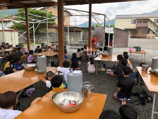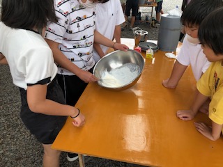 2つ目の活動のアイスクリーム作りが始まりました.ホイップと牛乳、砂糖を混ぜています。