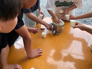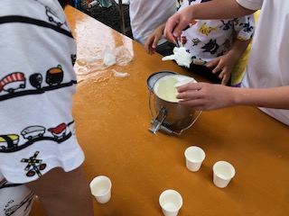 出来上がったアイスクリームをみんなで試食しました。おいしい!と好評でした。