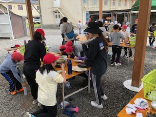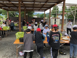 完成したカレーライスを食べています。ほとんどの班がうまくできたようです。お家よりおいしい!?と言っている子もいました。